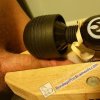 But what did I decide to do after all of that? First, I thought his dick had been getting a little too much pleasure. So much that he was expecting to cum after all of it. I couldn’t have him thinking that, so I had to give his dick the opposite feeling for a bit. I took a wooden clamp that I had lined with the rough side of velcro (see this post for how to build your own), set it on a stool in front of him at the level his cock was it, held his cock down, and started tightening it up.