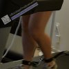 He was on the treadmill for a total of about 45 minutes at speeds up to 2 mph and an incline up to 10 degrees. That can get tiring pretty fast, especially keeping in mind that his feet were cuffed together with a short amount of slack between them so he couldn’t take very big steps. (I had stopped and started the treadmill to put the vibrating cock rings on his dick, so the photo above only shows a portion of his total time.)