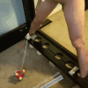 I turned the Bumble Ball on, and watched it roll around on the floor under him, yanking the clothespins on his nipples every time it tried to go out of a pretty small area.