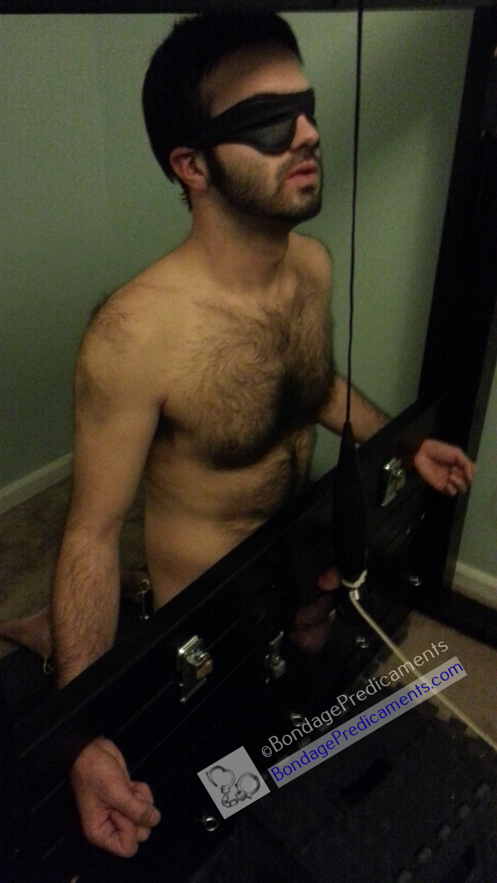 As always, make sure bdsm/kink play is safe, sane, and consensual. Never leave your sub alone during bdsm play. Prepare everything needed before restraining your sub so there’s no need to step away until after you’ve released him. When using rope or any tightly fitting cuffs, always periodically feel your sub’s hands/feet/balls (whatever is tied) to ensure they aren’t cold. Cold is a sign of circulation loss which needs to be addressed immediately by removing the restraints in that area before your sub gets hurt. When using any powered devices (battery or AC), keep in mind that although rare, things could be defective and get hot and/or catch fire (most of you have probably heard about incidents with a cell phone battery in the news lately). So it’s important to be close by especially when using any powered devices, just in case.